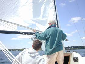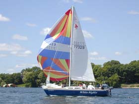 Wayzata Yacht ClubMarcus, future spinnaker flierLewis, future foredeck personAll the gearCaptain TrevorHere it is, Banue, the 23′ SonarLearning EVERYTHING…Marty, the experienced sailor who will teach us the tricks of sailingAttaching the jibSonar 225, BanueWatching the main sail…Trevor demonstrating how to prep for spinnaker flying…The tiller (steering wheel) of the boat.Trevor demonstrating a jibeThe million-dollar homes around Lake MinnetonkaMarty flying the spinnakerThe Sonar fleet in the middle of a race – all I could do at this time was take picturesMarcus and his new home, Minneapolis