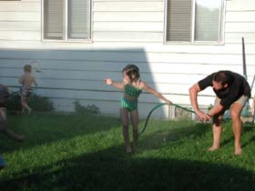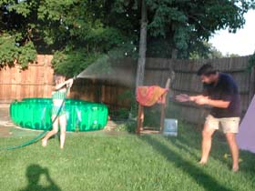 First victim, MarcusBrett was helping with the hoseBut he couldn’t stop Marcus… and this is what happens!Bridget and Iwona, moving away from the waterEthan was having fun tooThe kids were smart – they turned off the water sourceWhile Ethan guards the water sourceSavannah attempts to steal the hoseMarcus just picks up the kidsand put them in the poolRound two…Next victim, IwonaAfter a whole day of running around…Sleep tight!